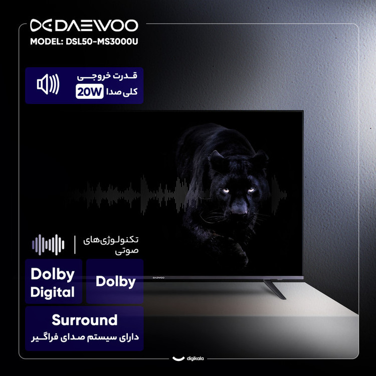 تلویزیون هوشمند ۵۰ اینچی دوو مدل DSL-50MS3000U، گزینهای مدرن برای ارتقای تجربهی سرگرمی خانگی با کیفیت تصویر 4K Ultra HD است. این دستگاه با طراحی تخت و پایههای دوشاخه، به خوبی با فضاهای نشیمن امروزی هماهنگ میشود. نمایشگر LED این تلویزیون با نور پسزمینه DLED و پنل VA، تصاویری با وضوح ۳۸۴۰ در ۲۱۶۰ پیکسل و کنتراست بالا ارائه میدهد. پشتیبانی از HDR10 هم به نمایش بهتر جزئیات در صحنههای تاریک و روشن کمک میکند. نرخ بهروزرسانی ۶۰ هرتزی برای تماشای روان فیلم و برنامههای تلویزیونی مناسب است و قابلیت ارتقای کیفیت تصویر هم در آن گنجانده شده. سیستم صوتی ۲۰ واتی آن با دو بلندگوی ۱۰ واتی و پشتیبانی از Dolby Digital، صدایی فراگیر و سهبعدی را به ارمغان میآورد. این تلویزیون هوشمند با سیستمعامل اندروید ۱۱، پردازندهی چهار هستهای و ۸ گیگابایت حافظه داخلی، دسترسی به دنیایی از برنامهها و قابلیت Screen Mirroring را ممکن میسازد. سه درگاه HDMI، دو درگاه USB، پورت LAN، وایفای و بلوتوث، امکان اتصال به انواع دستگاهها را فراهم میکنند. گیرنده دیجیتال داخلی DVB-T2 هم شما را از خرید دستگاه جداگانه بینیاز میکند. در کل، دوو DSL-50MS3000U با ارائهی ترکیبی از تصویر 4K، صدای باکیفیت و امکانات هوشمند، انتخابی هوشمندانه برای لذت بردن از فیلم و سرگرمیهای روزمره است.