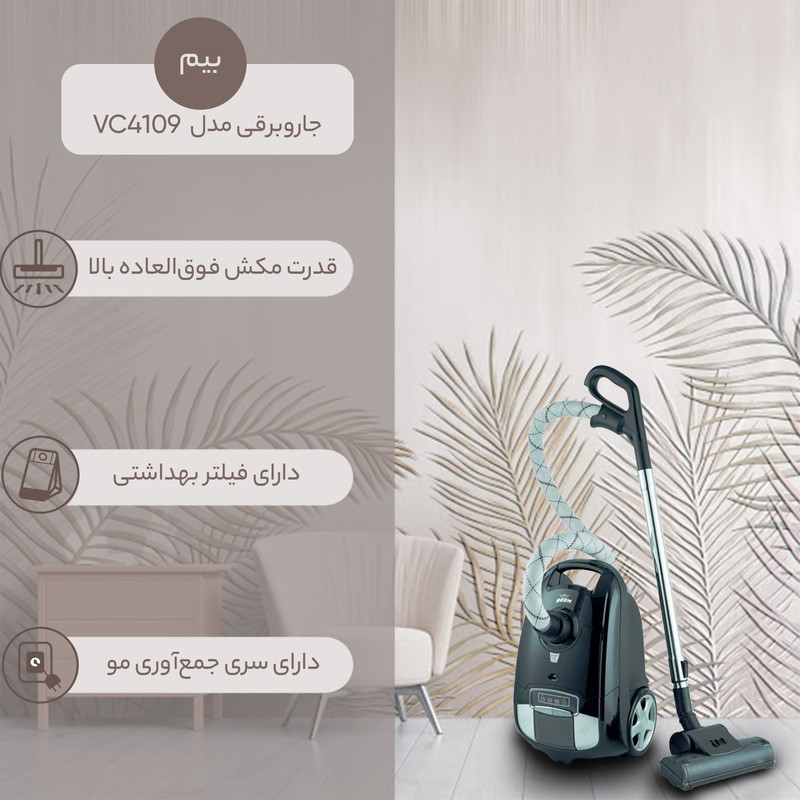 طراحی زیبا و خاص ، دارای استاندارد بین المللی VDE برای کابل برق ، چراغ نشانگر ال ای دی برای تنظیم سرعت ، میزان مکش 26 کیلو کالری ، میزان جریان هوا 45 لیتر در هر ثانیه ، دارای محفظه متعلقات ، فیلتر خروجی هپا