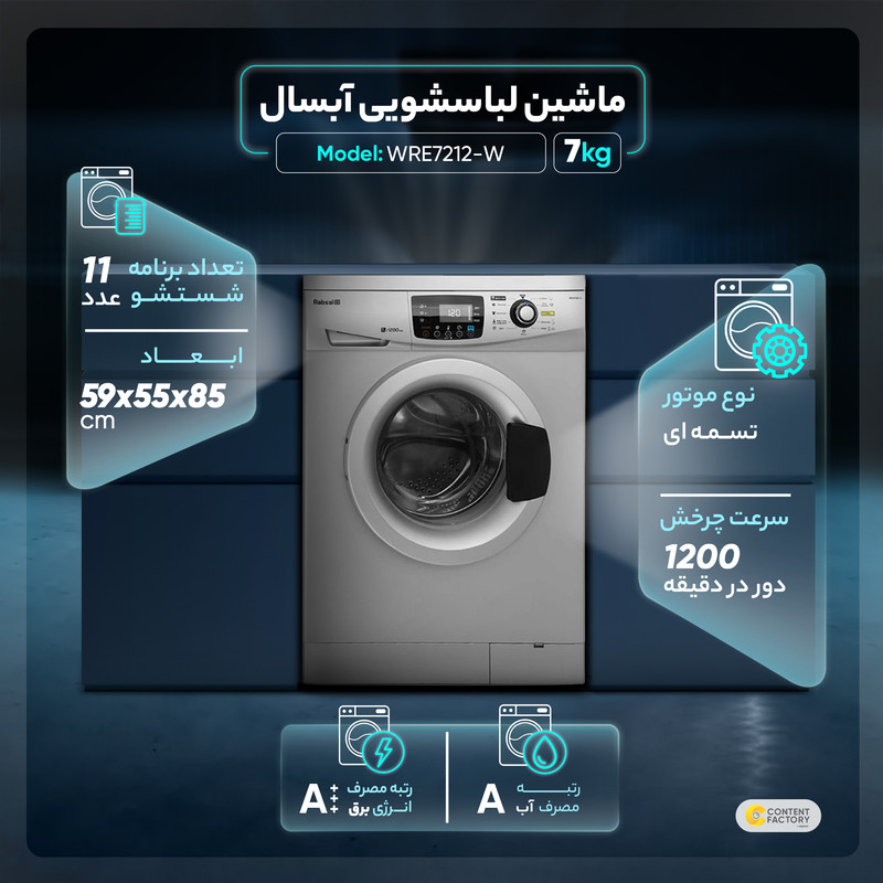 ماشین لباسشویی آبسال مدل WRE7212-W ظرفیت 7 کیلوگرم