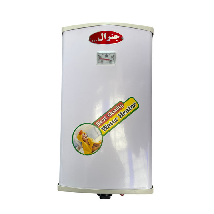 آبگرمکن برقی جنرال 70 لیتری یکی از آبگرمکنهای دیواری برند General است. آبگرمکن برقی از نظر خروجی سیستم کاملا مشابه آبگرمکن های گازی است و تنها ورودی آنها تفاوت دارند. در آبگرمکن های گازی ورودی گاز شهر و یا گاز کپسول و در آبگرمکن برقی ورودی انرژی برق است. به این ترتیب آب گرم مصرفی در واحد تامین می شود. مخزن این آبگرمکن گالوانیزه است و برای پوشش بدنهی آن از رنگ اپوکسی پلی استر استفاده شده است. این محصول قابلیت نصب شیر اطمینان را دارد و لوله ورودی و خروجی آب در پایین بدنه محصول تعبیه شده که تهیه شیر یکطرفه و شیر اطمینان به عهده مصرف کننده میباشد. پیشنهاد میگردد که نصب این محصول توسط افراد مجرب و کار آزموده انجام گردد.