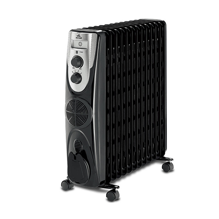 شوفاژ برقی فن دار ایوولی مدل EVOH-13MFWB از محصولات با کیفیت ایوولی ایتالیا و ساخت چین میباشد. این محصول دارای گرماده های PTC بوده که باعث افزایش طول عمر دستگاه شده و دارای انتقال گرما از طریق روغن بوده که از بهترین و جدیدترین مدل های بازار میباشد. این محصول دارای دو درجه مکانیکی بوده که یکی تنظیم درجه المنت و یکی میزان دما میباشد. 13 پره این محصول با تکنولوژی روز گرمادهی دنیا به راحتی محیط حدودی 25 متر را گرم میکند. فن این محصول نیز قابلیت گرمادهی جداگانه را داشته که میتوان برا فضای کوچک استفاده نموده و در مصرف انرژی صرفه کرد. از دیگر قابلیت های این محصول میتوان به حالت ویژگی ضد یخ زدگی ، ویژگی جلوگیری از گرمایش بیش از حد و سوییچ ایمنی قطع جریان اشاره نمود.