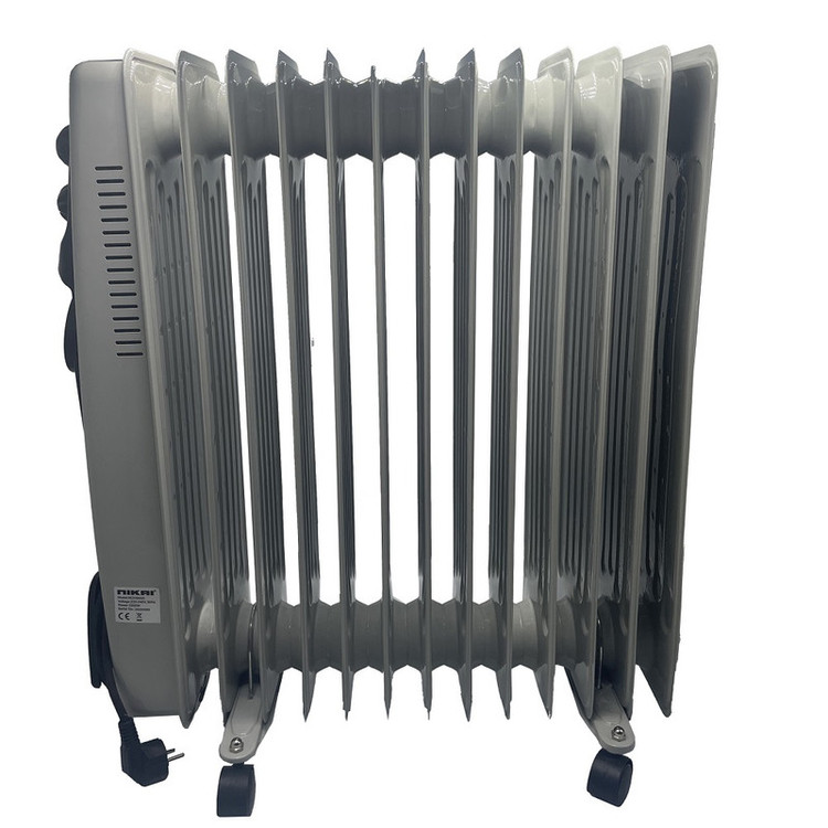شوفاژ برقی نیکای مدل NOH944A دارای 13 پره بزرگ و فن دار؛دارای حداکثر توان 3200 وات می باشد.این دستگاه بوسیه برق و گردش روغن در داخل دستگاه گرمای بسیار بالایی تولید کرده و راندمان بسیار بالایی نسبت به مصرف برق دارد. این دستگاه دارای حداکثرتوان 3200 وات در صورت قرار دادن بروی حداکثر دما همراه بافن می باشد. ویژگی های این دستگاه موارد زیر می باشند؛ 3 سطح گرمایی کم،متوسط،زیاد_دارای 13پره،دارای فن(دکمه مجزاجهت روشن و یاخاموش کردن فن)،دارای سیستم حفاظت دستگاه در برابر گرم شدن بیش از حد دستگاه و خاموش شدن دستگاه،دارای دکمه ولومی ترموستات که درجه دمای دستگاه را مطابق با تنظیم دمای ترموستات تنظیم می نماید،دارای 4 چرخ جهت سهولت در جابجایی،دارای محفظه جهت جمع کردن کابل ،دارای دستگیره می باشد.