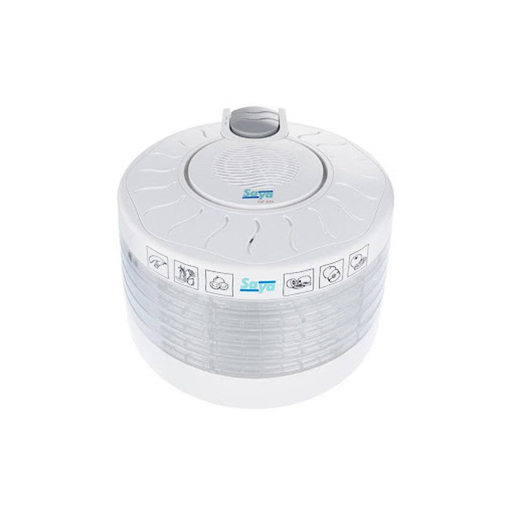 میوه و سبزی خشککن مدل «GP 103» محصولی کارآمد از شرکت «سایا» (Saya) است. این دستگاه وسیلهای پرکاربرد و جذاب برای دوستداران تنقلات سالم خانگی و ورقههای خوشطعم میوه است. میوه خشککن GP 103 از موتور 250 وات برخوردار است. زمان لازم برای خشکشدن کامل میوهها به قطر آنها بستگی دارد و این زمان متغیر است. بهترین قطر میوه برای خشککردن این دستگاه پنج میلیمتر است. پنج طبقهی مختلف برای این محصول در نظر گرفته شده است که اجازهی خشککردن میوههای مختلف را در حجم زیاد و به طور همزمان به کاربر میدهند. پنج سینی بزرگ دستگاه روی هم سوار میشوند و امکان چرخش 360 درجه و قابلیت جداسازی از بدنه را دارند. بهاینترتیب نظافت قطعات دستگاه آسان است. این سینیها مشبک هستند تا گرما بهخوبی میان آنها منتقل شود. میوههای خشک از تنقلات خوشمزه و سالماند که میتوانند جایگزین بسیار خوبی برای تنقلات ناسالم باشند.با استفاده از این دستگاه میتوانید برگههای میوه را با اطمینان از سلامت و بهداشت کامل آنها در محیط خانهی خود تهیه کنید. گفتنی است این محصول علاوهبر میوه، قابلیت خشککردن سبزیجات و گلها را هم دارد.
