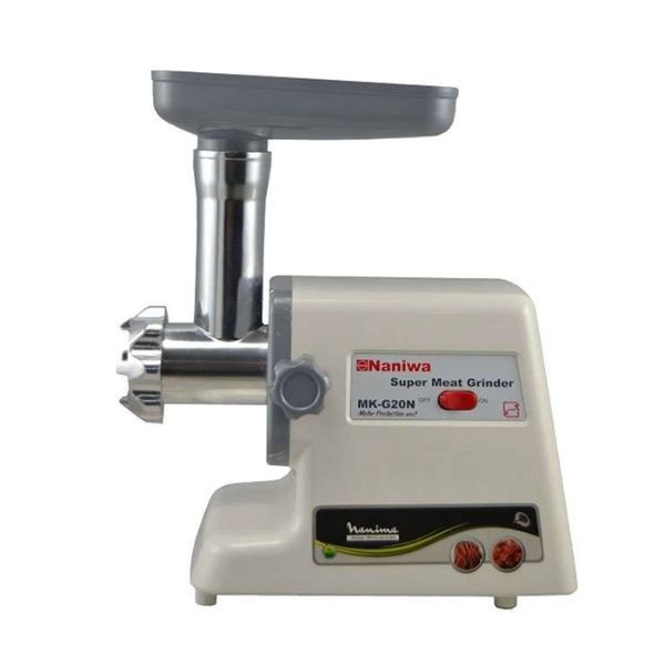 چرخ گوشت نانیوا مدل MK-G20N . این محصول با توان 800 وات، کیفیت کار و راندمان بالای دستگاه را تضمین میکند. تیغه چرخ گوشت از جنس استیل ضد زنگ ساخته شده که عملکرد بالا و دوام دستگاه را تضمین میکند. این چرخ گوشت مجهز به سیستم قطع کن اتوماتیک موتور است که در صورت اضافه بار، دستگاه به صورت اتوماتیک خاموش میشود. همچنین، کلید حرکت معکوس از دیگر ویژگیهای این دستگاه است که به کاربر امکان میدهد گوشتهای باقیمانده در تیغه را به راحتی چرخ کند. برای عملکرد بهتر، این دستگاه دارای سه شبکه برای چرخ کردن گوشت ریز، گوشت درشت و سبزی خردکن است. کاربران میتوانند میزان درشتی یا ریز بودن گوشت و سبزیجات را انتخاب کنند. استفاده از قطعات آلومینیومی براق و زیبا و بهکارگیری استانداردهای ایمنی، این چرخ گوشت را به یک محصول ایدهآل تبدیل کرده است.