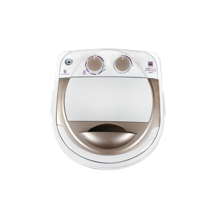 محصولی با نام تجاری "فریدولین" مدل "SWF35A" یک مینی واش بسیار کاربردی و سبک است. با ظرفیت داخلی 3.5 کیلوگرم، این مینی¬واش کاملا اتوماتیک عمل میکند. برای شروع کار با این دستگاه، لباسها را از دریچه بالایی به داخل مخزن ریخته و دکمه روشن و خاموش دستگاه را فشار دهید. از طریق پنل، شما میتوانید نوع عملکرد دستگاه را تنظیم کنید. همچنین، یک صفحه نمایش دیجیتالی زمان باقیمانده تا پایان عملیات شستشوی لباسها به شما نمایش داده میشود. از دیگر ویژگیهای این مدل میتوان به قابلیت تنظیم سطح آب در سه حالت مختلف، پمپ تخلیه، فیلتر پرزگیر و شیر برقی اشاره کرد. فریدولین feridolin یک شرکت تولیدی صنعتی در ایران است که بیش از 35 سال سابقه در زمینه تولید مینی واشها و ماشینهای لباسشویی فریدولین نیمه خودکار و خودکار دارد. این شرکت از فناوری روز در تولیدات خود استفاده میکند و تمرکز خود را بر صرفه جویی در مصرف آب و مواد شوینده و کاهش زمان شستشوی لباسها دارد. این مینی واش با مصرف انرژی درجه A+ تایید شده¬است که نشانگر کاهش مصرف انرژی توسط فریدولین است. ابعاد این مینی واش 45 × 46 × 76 سانتیمتر است و بدنه آن از فایبر گلاس ساخته شده و ضد رطوبت است. در مقایسه با سایر مینی واش ها، نحوه استفاده از مینی واش فریدولین sw25 بسیار ساده است. این مینی واش دارای پمپ تخلیه است که خودکار عمل میکند و نیازی به خارج کردن آب به صورت دستی ندارد. این مینی واش با عملیاتهای شستشو، آبکشی و خشک کردن کامل است. تنظیم ارتفاع آب براساس حجم لباسها و اضافه کردن مواد شوینده میتواند زمان آبکشی و شستشو را کاهش دهد. در عین حال میتوانید بدون نیاز به جداگانه آبکشی کردن آنها لباسها را بر روی آویز بگذارید. عملیاتهای دلخواه را میتوانید تنظیم و زمان شستشو را از روی نمایشگر LED مشاهده کنید. این نوع مینی واش دارای وزن ۶ کیلوگرم و سرعت چرخش موتور ۱۴۰۰ در دقیقه است. همچنین، ظرفیت این دستگاه ۲.۵ لیتر است. با توجه به استفاده از فناوری جدید در تولید این نوع مینی واشها، مصرف برق و آب آنها همواره پایین است و همچنین انرژی کمی مصرف میکنند. مینی واش فریدولین در بازه زمانی ۵ تا ۱۲ دقیقه، لباسها را شسته و در انتها پس از سه دقیقه، لباسها را خشک و تمیز تحویل میدهد.