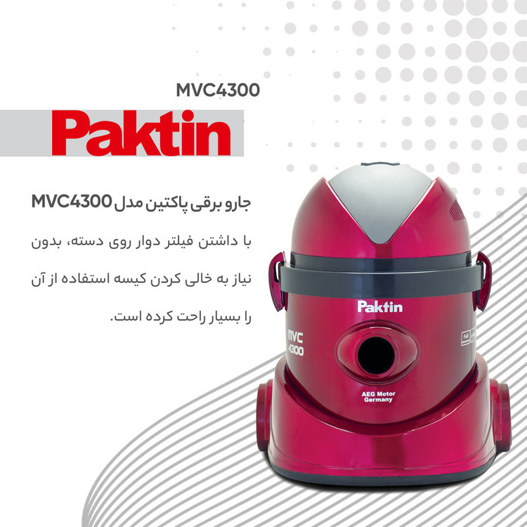 دارای کلید دو سرعته تنظیم قدرت مکش قابلیت استفاده از کیسه دائمی و یکبار مصرف لوله استیل قابل تنظیم با طول 92 سانتیمتر فیلتر دوار نشکن دارای موتور پر قدرت AEG آلمان