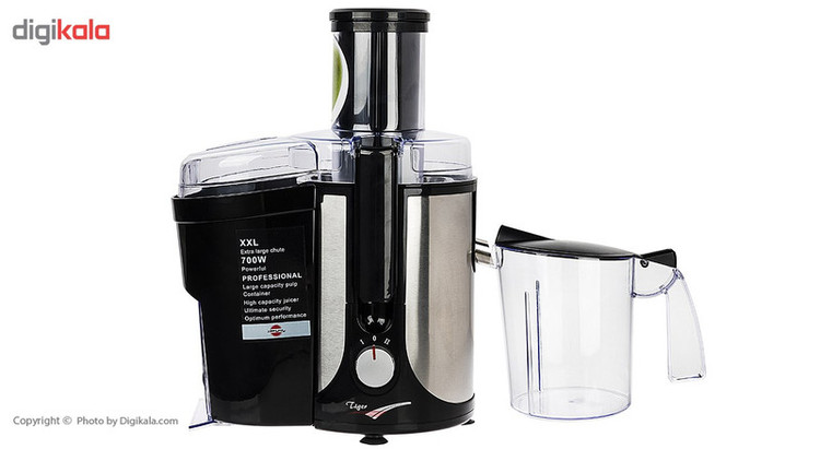 آبمیوهگیری «پارس خزر» مدل «تایگر» دستگاهی بسیار زیبا و کارآمد است. این دستگاه بدنهای ترکیبی از استیل و پلاستیک دارد. ترکیب رنگ مشکی، استیل و پلاستیکهای شفاف ظاهر آن را بهبود میبخشد. موتور قدرتمند این دستگاه توسط پیچ تنظیم در دو سرعت فعالیت میکند. تیغهها و فیلتر دستگاه از جنس استیل ضدزنگ هستند و کیفیت ساخت بالایی دارند. میوههای درشت مانند سیب از طریق دهانهی ورودی بزرگ وارد دستگاه میشوند؛ بهاینترتیب نیازی به ریزکردن میوهها نیست. تفالهی میوه به مخزن تفاله منتقل میشود و آبمیوه از سمت دیگر خارج میشود. آبمیوهگیری پارس خزر مدل تایگر دارای یک پارچ جمعآوری آبمیوه است که با طراحی خاصی که دارد، به خروجی دستگاه متصل میشود تا آبمیوه بدون اینکه به زمین یا روی میز بریزد، به این پارچ منتقل شود. این دستگاه دارای پایههای ضد لغزش زیر بدنه است تا حین فعالیت دستگاه، لرزش و جابهجایی ایجاد نشود و خطری بروز نکند. پارس خزر تولیدکننده و عرضهکنندهی لوازم خانگی برقی بوده که طرفداران و مشتریان زیادی را به سمت خود کشانده است.